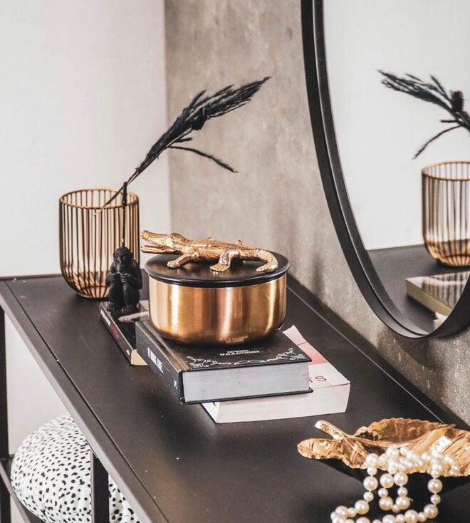 OUT OF THE BOX - We need more stylish ways to hide our mess. This black/golden jar with the cutest top comes in very handy and stylish at the same time!I