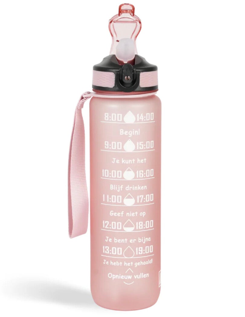 Motivatie Waterfles met Nederlandse Tijdsmarkering met Rietje Rosé Gold